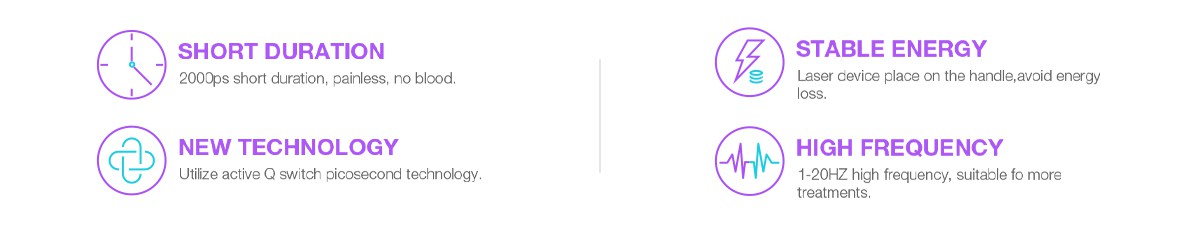 (4) veloċi Għat-tneħħija tat-tatwaġġ, Q tradizzjonali: lejżers li jaqilbu tipikament jeħtieġu 6-8 trattamenti. Bl-użu ta' laser picosecond, tieħu biss 3-4 trattamenti biex tneħħiha kompletament.